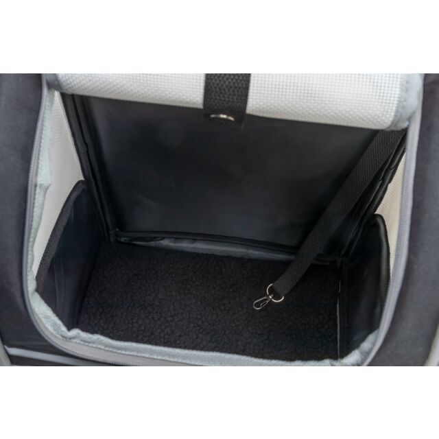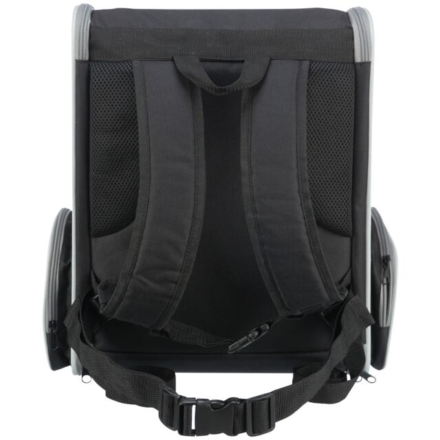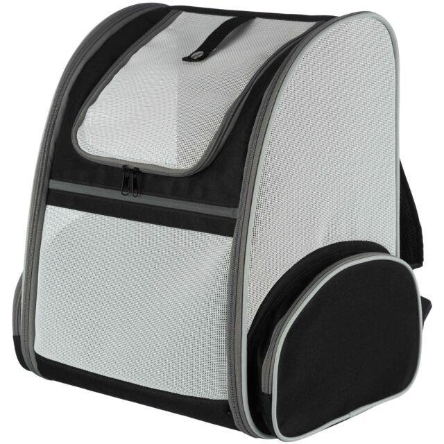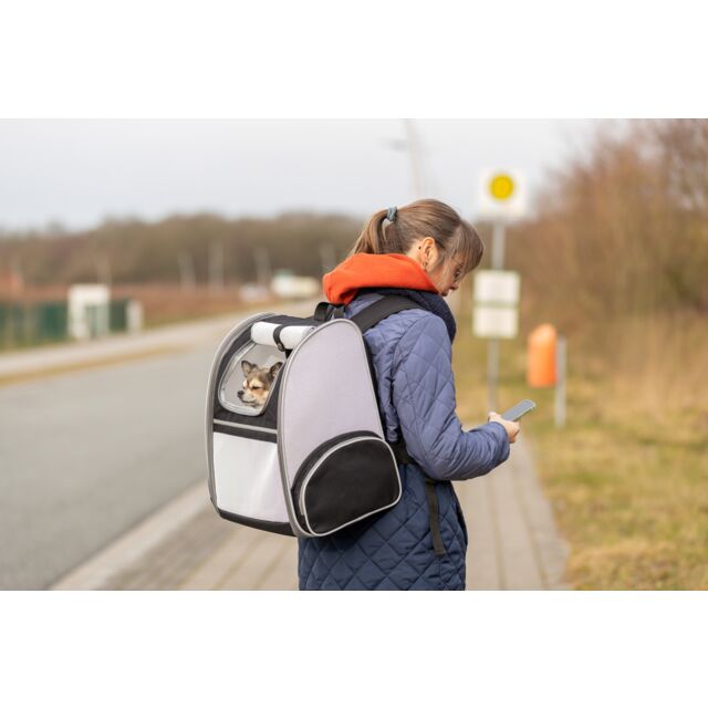 Praktischer Trixie Rucksack „Chloe“ in stilvollem Hellgrau und Schwarz, ideal für Haustiere unterwegs. Maße: 39×43×27 cm, mit bequemen Trageoptionen und gutem Belüftungssystem.